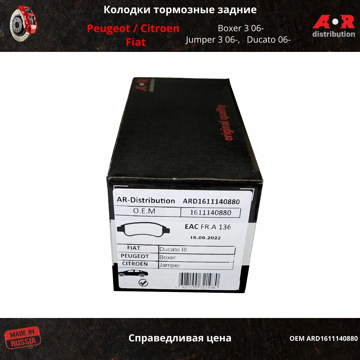 Купить Колодки тормозные задние Ситроен, Пежо Боксер 1611140880 с доставкой по всей России.