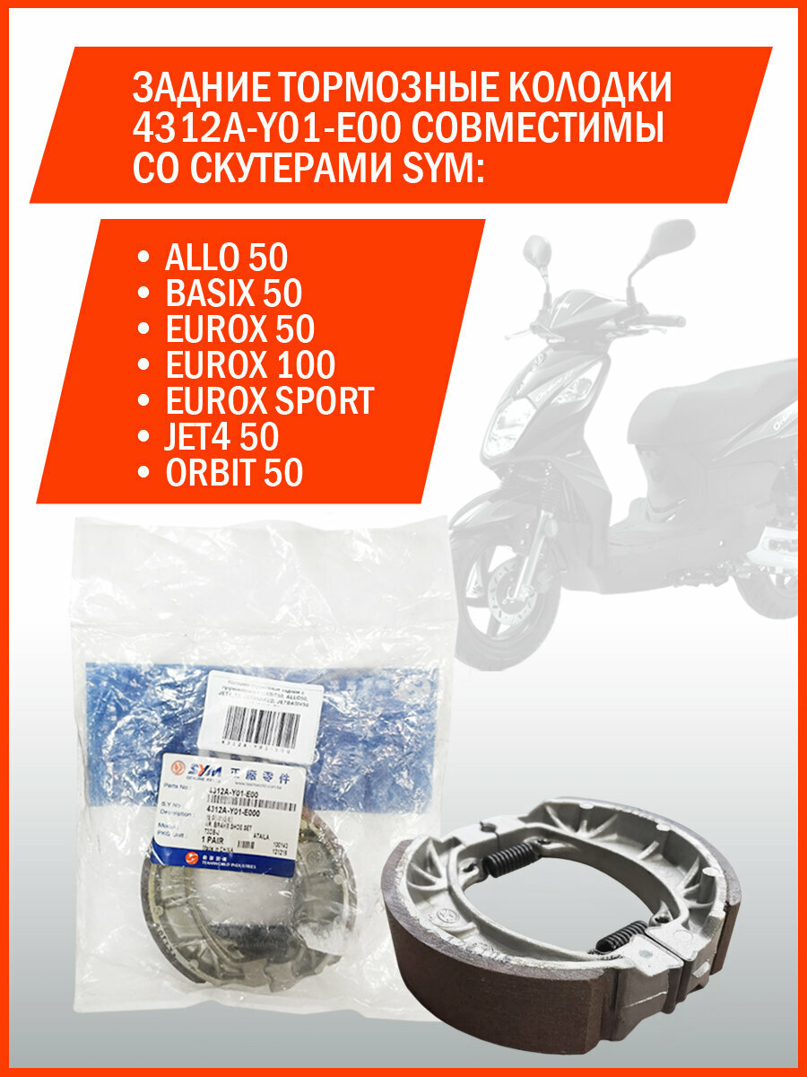 Колодки тормозные задние с пружинами SYM комплект (Allo, EuroX, Jet4, Orbit): сравнение цен, характеристики, фото, актуальное наличие и цены.