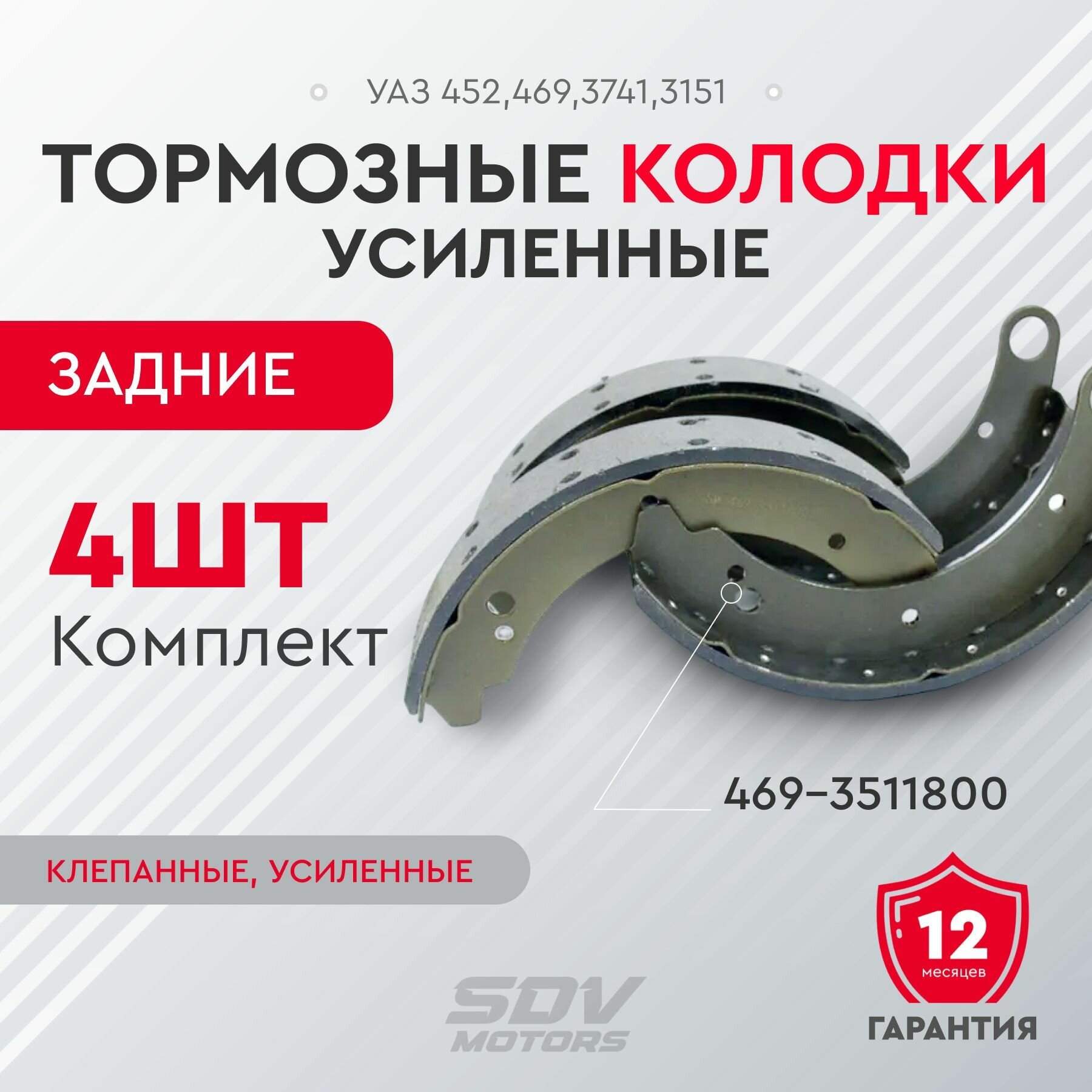 Комплект задних тормозных колодок для УАЗ: SM.469-3511800