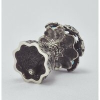 Колокольчик выполнен из сплава бронзы - нейзильбера, который характеризуется коррозионной устойчивостью и повышенной прочностью (по сравнению с бронзой), он так же придает изделию более благородный серебристый цвет.