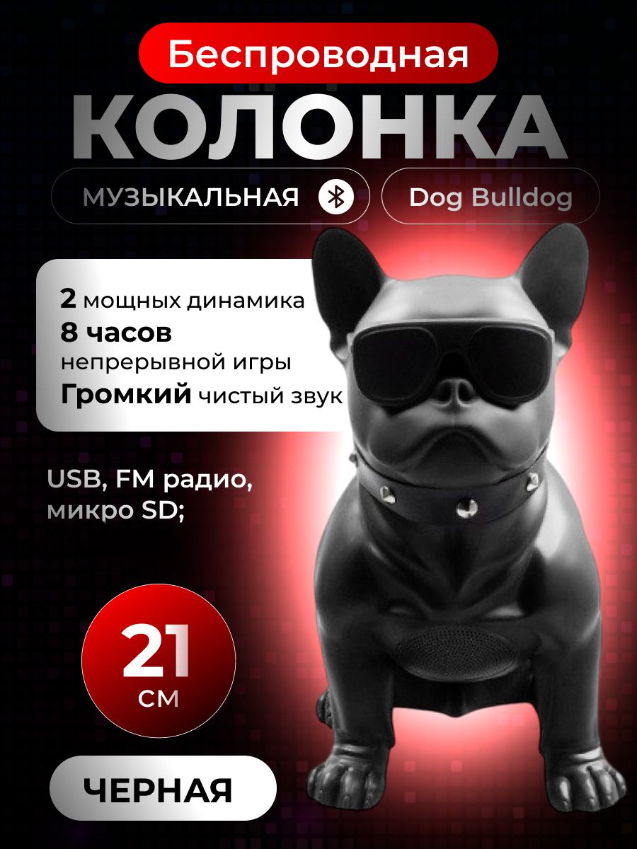 Колонка bluetooth, беспроводная, музыкальная, Бульдог, черная, 21 см, 10 Вт: сравнение цен, характеристики, фото, актуальное наличие и цены.
