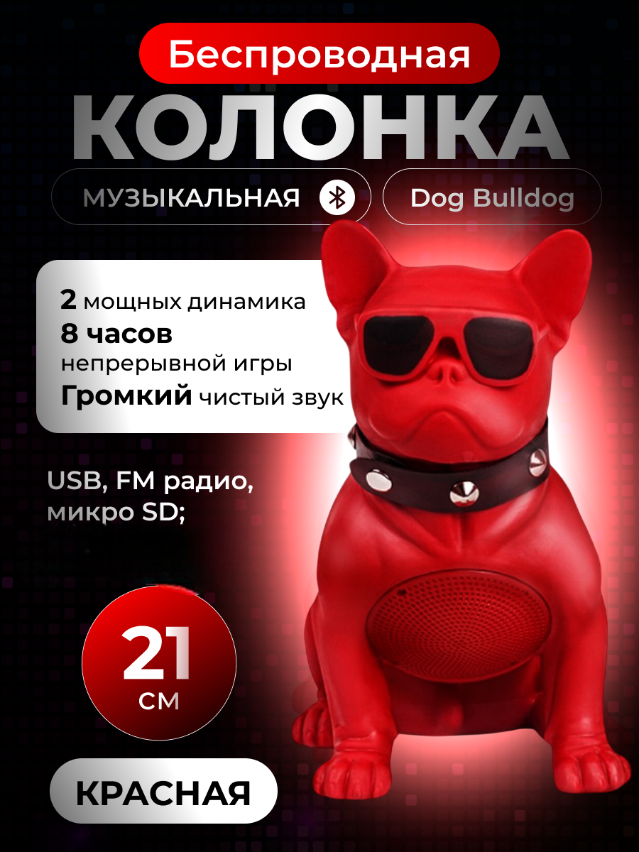 Колонка bluetooth, беспроводная, музыкальная, Бульдог, красная, 21 см, 10 Вт: сравнение цен, характеристики, фото, актуальное наличие и цены.