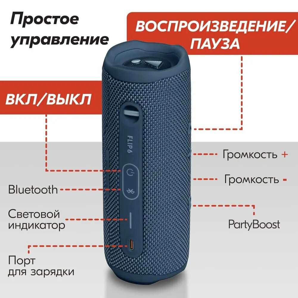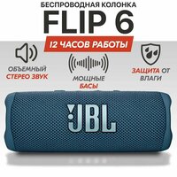 Купить Колонка блютуз беспроводная JB Flip 6, Синяя, портативная звуковая колонка, Bluetooth1 с доставкой по всей России.