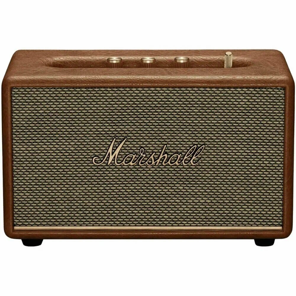 Marshall Acton III - это беспроводная колонка, которая объединяет в себе непревзойденный стиль и великолепное качество звука, продолжая традиции известных музыкальных устройств, разработанных компанией Marshall. С первого взгляда она притягивает внимание своим культовым дизайном, вдохновленным классическими гитарными усилителями, с характерной кожаной отделкой, золотыми акцентами и характерной решеткой, которая придает устройству уникальный винтажный вид. Этот аксессуар прекрасно вписывается в любой интерьер, от современного до ретро.