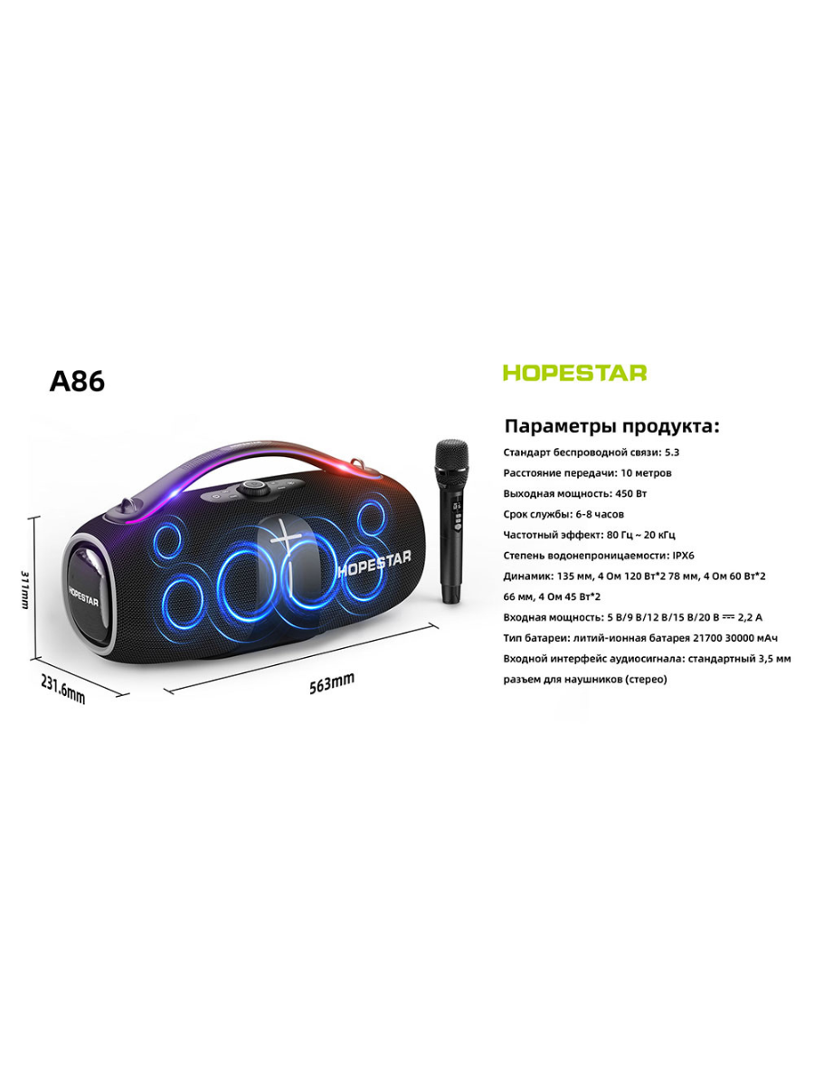 Беспроводная колонка Hopestar A86 - музыкальная аудиоколонка от бренда качественных Блютуз калонок с великолепным, мощным бассом.