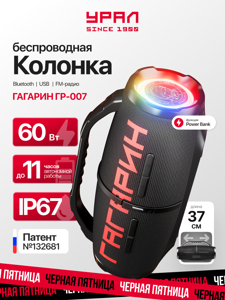 Портативная колонка Урал 007 «Гагарин», с ручкой, IP67, Bluetooth: сравнение цен, характеристики, фото, актуальное наличие и цены.