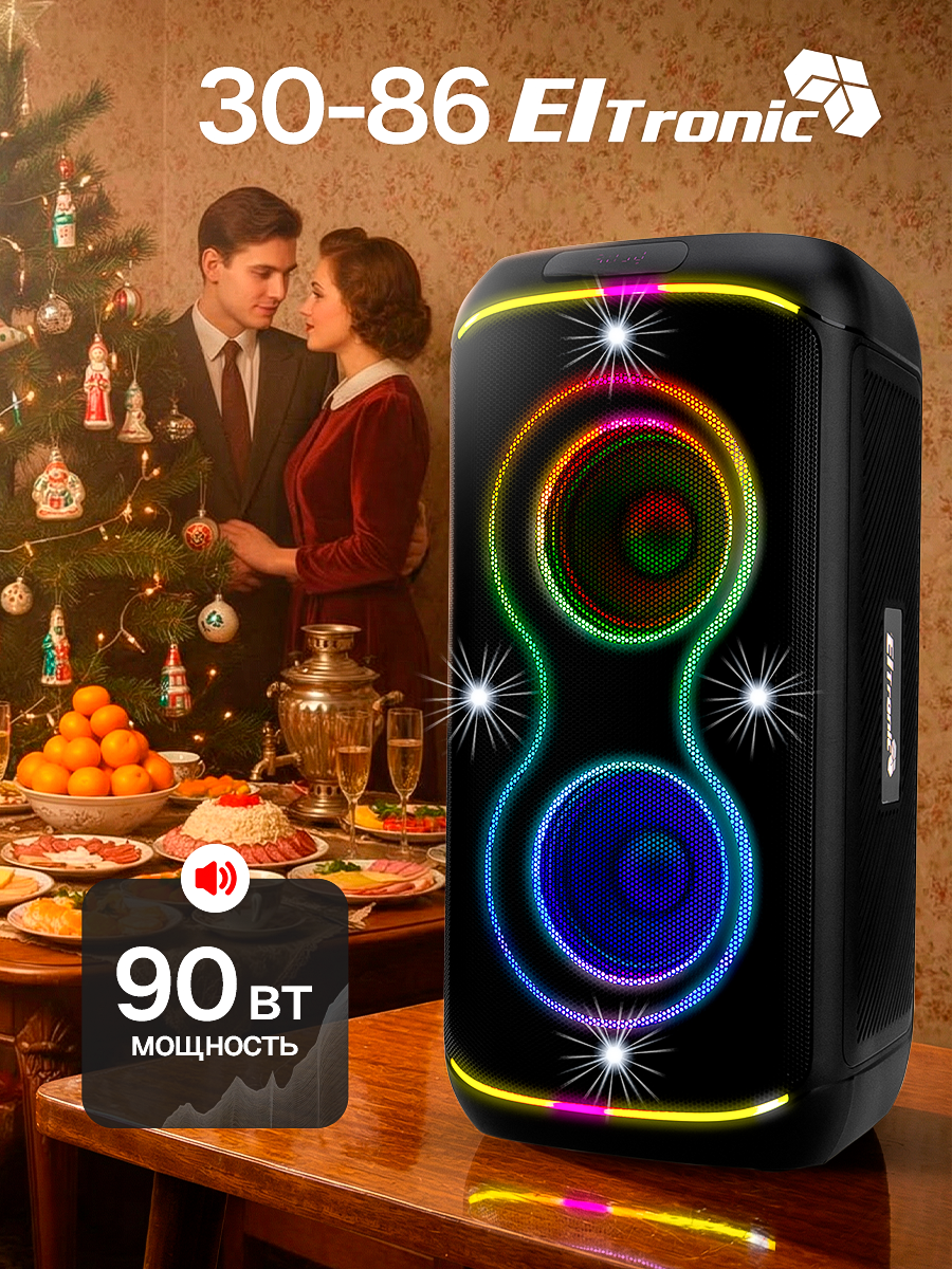 Купить Колонка портативная bluetooth Eltronic 30-86, FM-радио, подсветка, 90 Вт черная с доставкой по всей России. Колонка портативная bluetooth Eltronic 30-86, FM-радио, подсветка, 90 Вт черная: сравнение цен, характеристики, фото, актуальное наличие и цены.