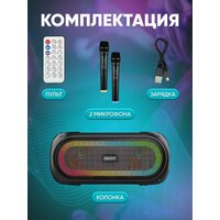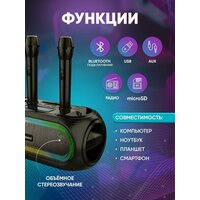 Колонка портативная переносная ZQS 4247 c 2 беспроводными микрофонами/беспроводная караоке система / колонка с микрофоном, USB, AUX, радиоприемником — Акустическая система для ТВ с подсветкой RGB и двумя беспроводными микрофонами P.M.P.O 250 ВТ