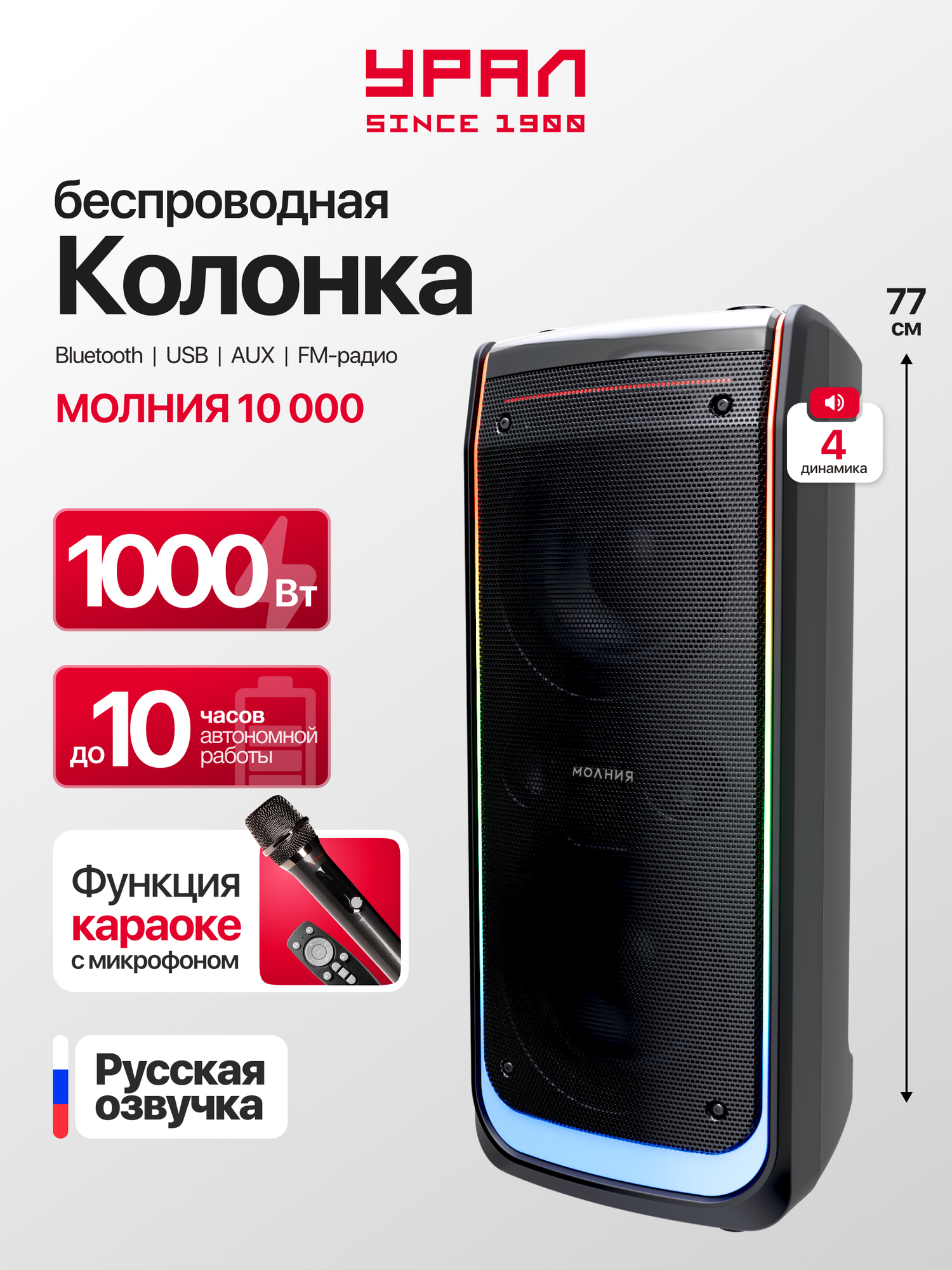 Колонка Урал «Молния 10000», Bluetooth, 1000Вт, FM, караоке, 8000мАч: сравнение цен, характеристики, фото, актуальное наличие и цены.