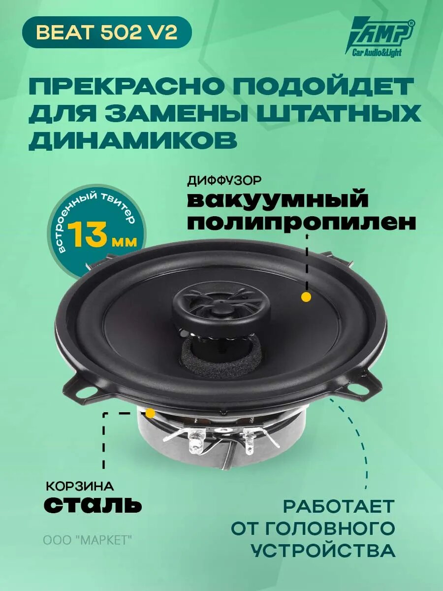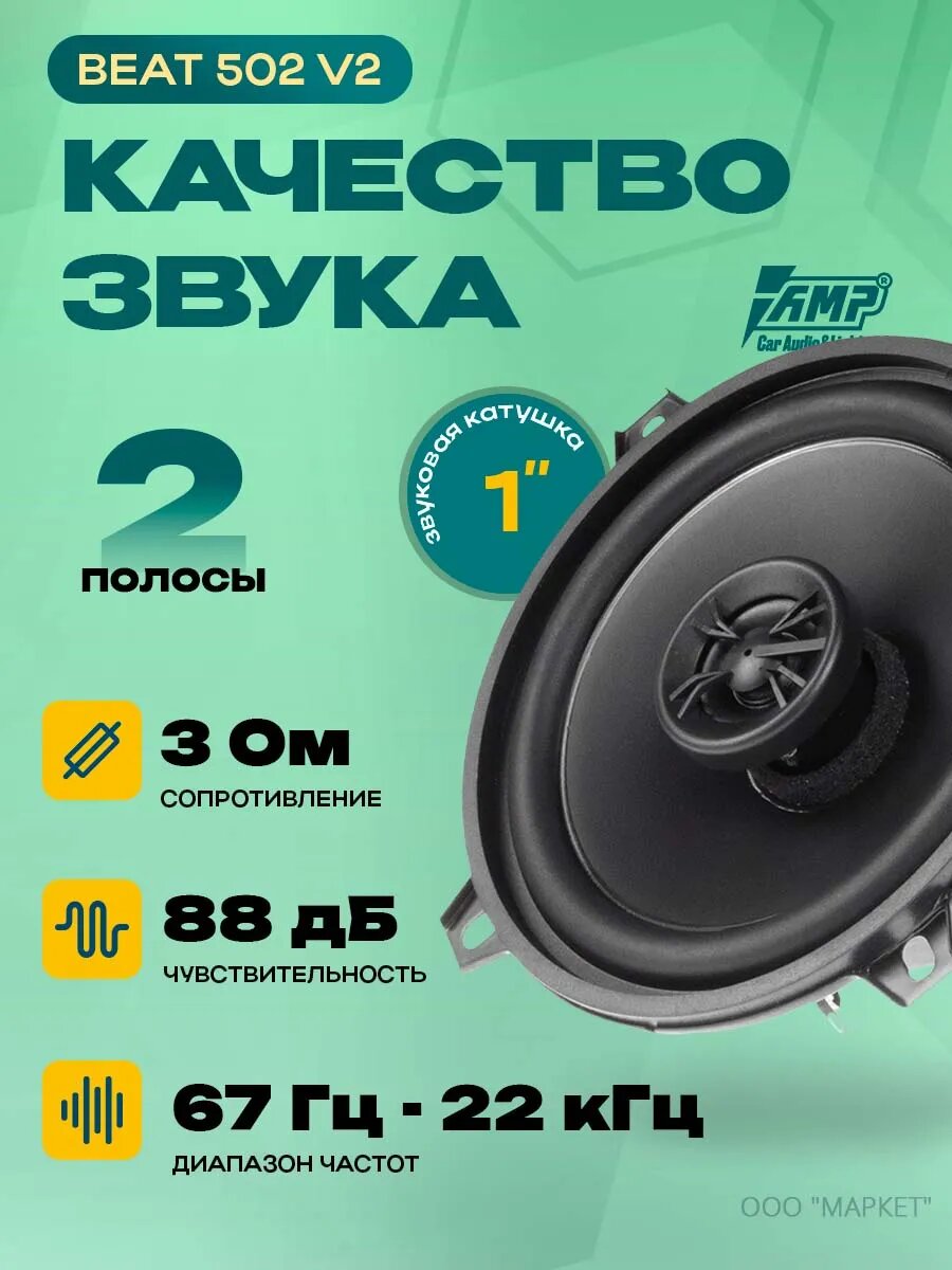 Beat 502 v2 — это автомобильные коаксиальные динамики диаметром 13 см (5 дюймов), предназначенные для установки в штатные места большинства автомобилей. Они отличаются хорошим качеством звука и высокой чувствительностью, что позволяет использовать их даже с маломощными головными устройствами. Особенности: - Двухполосная конструкция обеспечивает разделение частот между НЧ/СЧ-динамиком и высокочастотным твитером, что улучшает качество звучания. - Высокая чувствительность делает эти колонки подходящими для работы с любыми автомагнитолами, даже с низкой выходной мощностью. - Компактность позволяет легко установить динамики в стандартные посадочные места автомобиля. Эта акустика подойдёт для тех, кто хочет улучшить звук в автомобиле без значительных затрат и сложного монтажа.