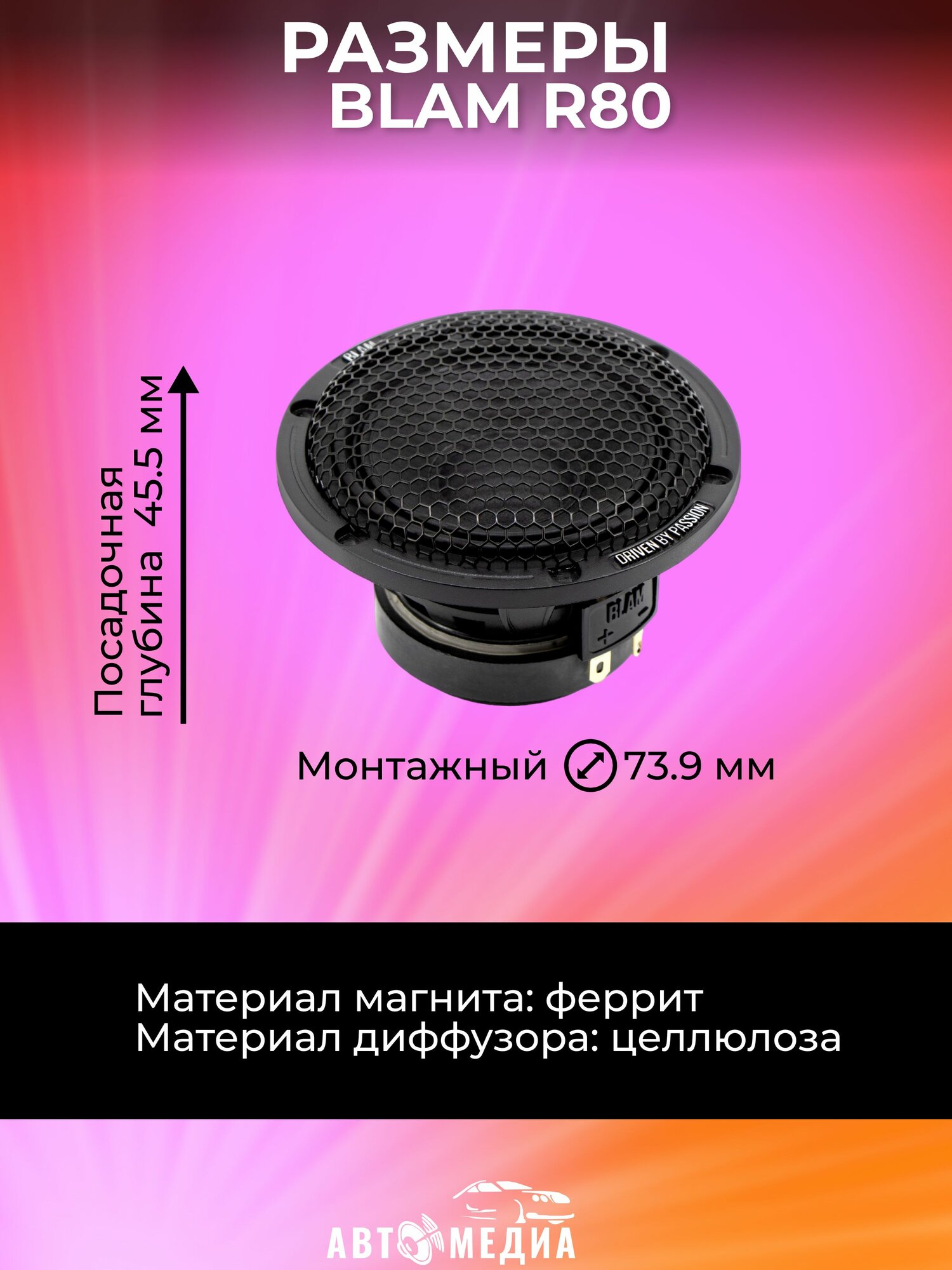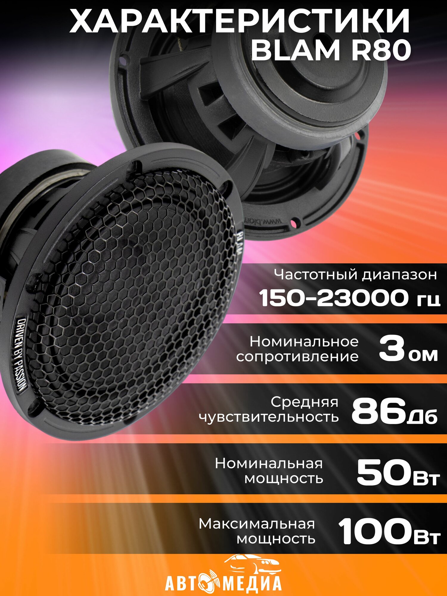 Колонки автомобильные BLAM R80 среднечастотные динамики 8см./комплект 2 шт.: сравнение цен, характеристики, фото, актуальное наличие и цены.