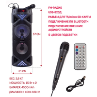 Портативная акустика BT Speaker ZQS-6201, питание от сети и аккумулятора, мощность 30Вт, черная