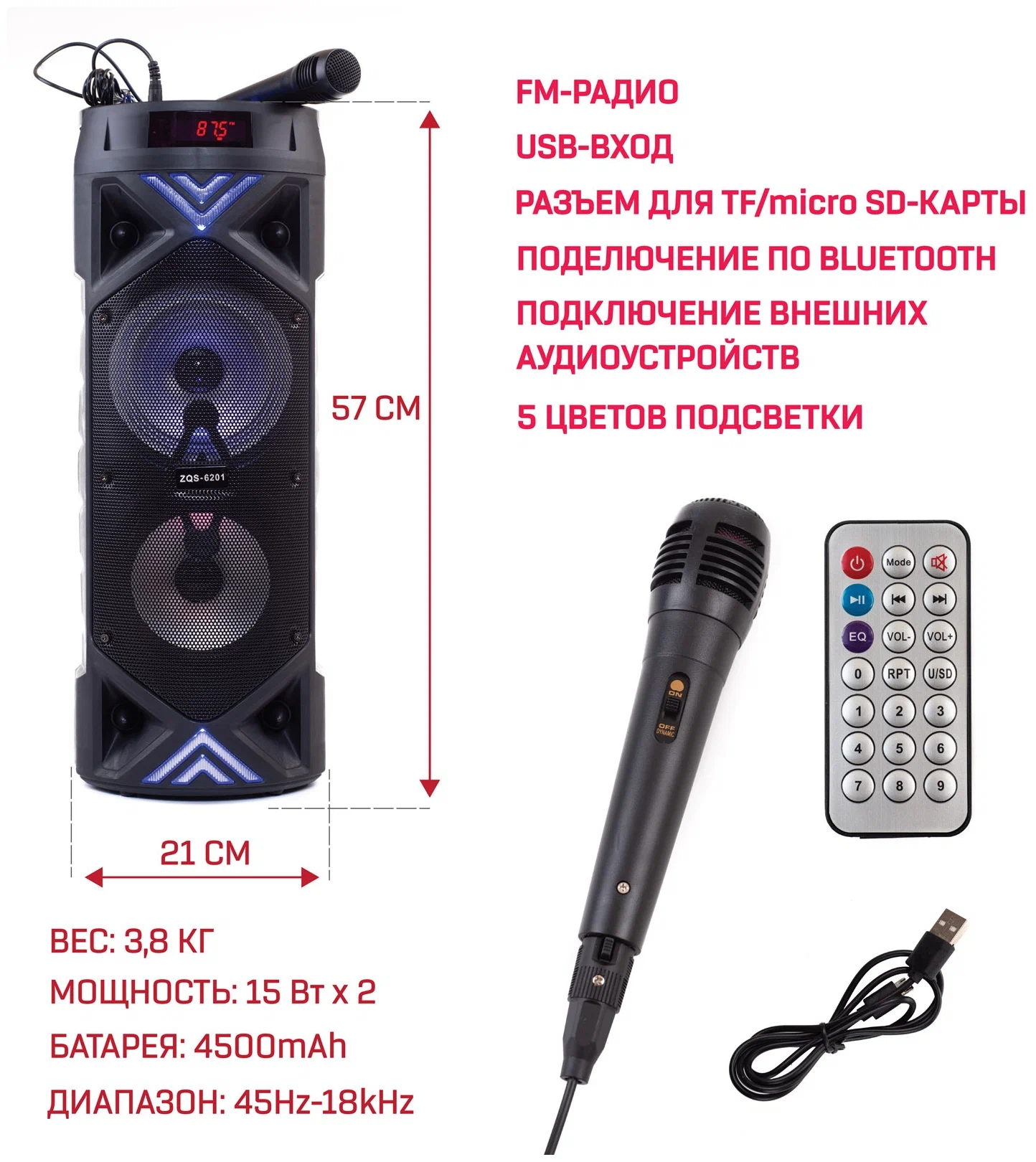 Портативная акустика BT Speaker ZQS-6201, питание от сети и аккумулятора, мощность 30Вт, черная: сравнение цен, характеристики, фото, актуальное наличие и цены.