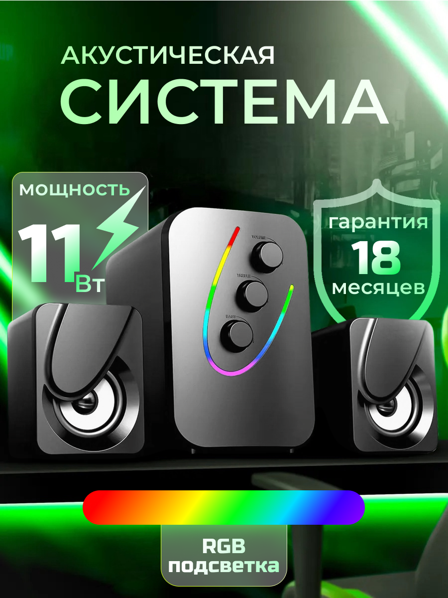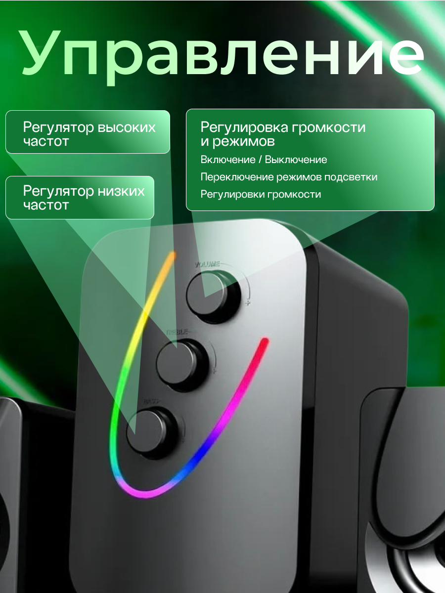 Купить Колонки для компьютера BlackRED, USB, Bluetooth 5.3, подсветка, фронтальные колонки с доставкой по всей России.