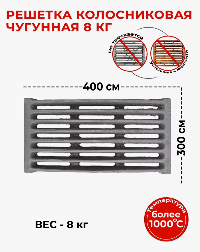 Купить Колосник 8 кг печной чугунный 400х300 с доставкой по всей России. Колосник 8 кг печной чугунный 400х300: сравнение цен, характеристики, фото, актуальное наличие и цены.