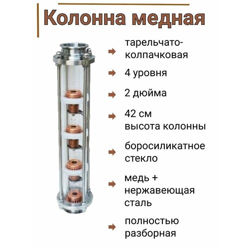 Купить Колпачковая колонна мировар медная, 4 тарелки, кламповое соединение 2 дюйма с доставкой по всей России.