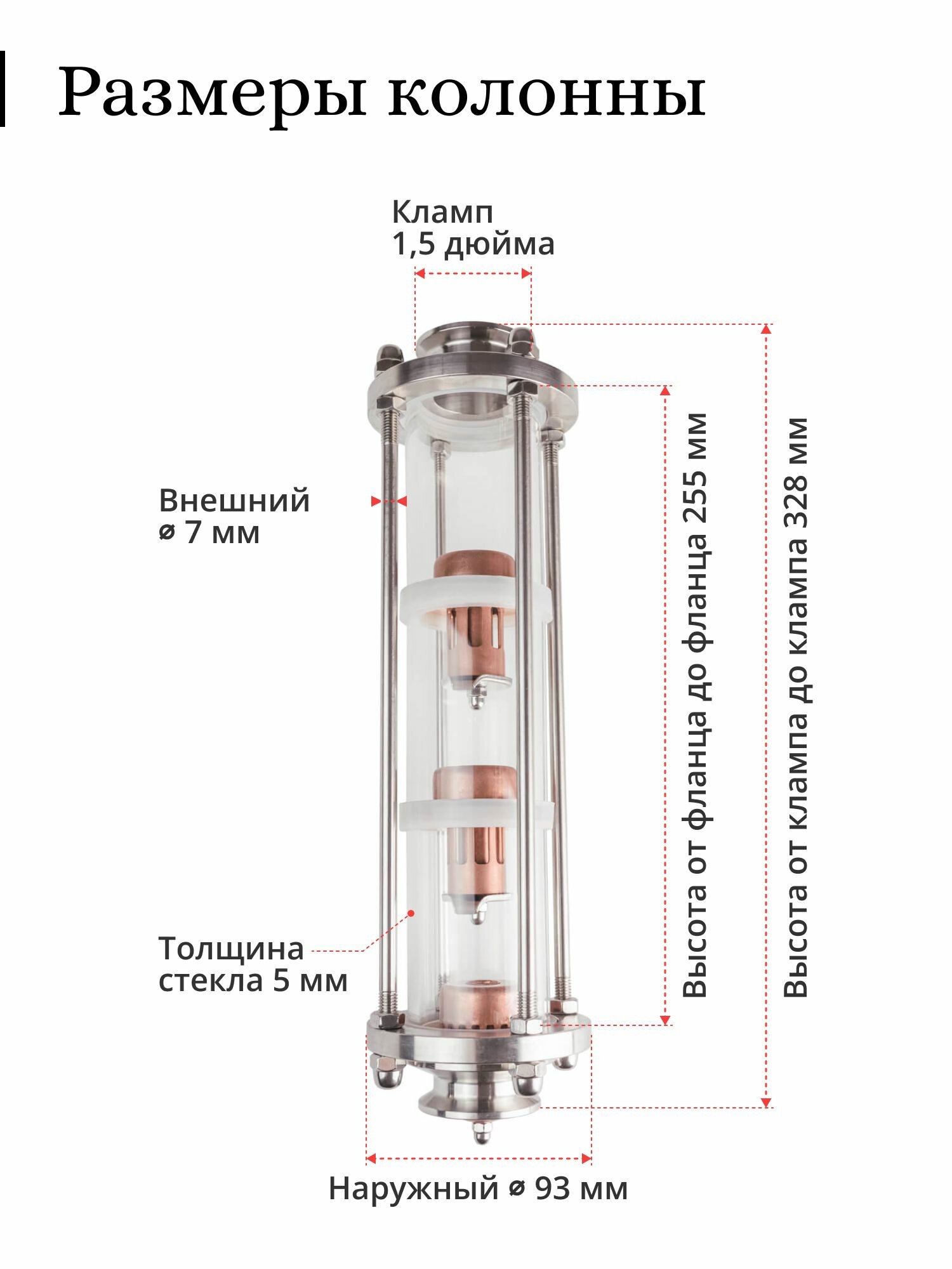 - внутренний диаметр стекла 50 мм;
