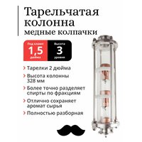 На фото вариант с 4 уровнями и 4 колпачками. Количество уровней колпачков влияет на степень очистки дистиллята. Меньше — сохраняется аромат сырья, больше — выше крепость и степень очистки.