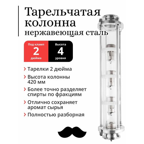 На фото вариант с 4 уровнями и 4 колпачками. Количество уровней колпачков влияет на степень очистки дистиллята. Меньше — сохраняется аромат сырья, больше — выше крепость и степень очистки.