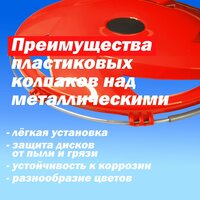 Колёсные колпаки - надёжная защита для грузовых автомобилей, автобусов и коммерческого транспорта. Изготовлены из прочного, легкого и гибкого пластика, что обеспечивает долговечность и удобство использования. Установка колпаков на колёса поможет уменьшить износ, вероятность повреждения и загрязнения колёсных дисков. Колпаки легко крепятся в посадочную канавку с упором в борт штампованного диска и защёлкиваются с помощью пружинной проволоки, которая установлена по периметру колпаков. Пластиковые колпаки на грузовик - универсальные, подходят для большинства грузовых машин со штампованными колёсами типа "евродиск". Они сохраняют первоначальный вид продолжительное время, легки в эксплуатации, не боятся воды и грязи.