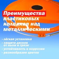 Колёсные колпаки - надёжная защита для грузовых автомобилей, автобусов и коммерческого транспорта. Изготовлены из прочного, легкого и гибкого пластика, что обеспечивает долговечность и удобство использования. Установка колпаков на колёса поможет уменьшить износ, вероятность повреждения и загрязнения колёсных дисков. Колпаки легко крепятся в посадочную канавку с упором в борт штампованного диска и защёлкиваются с помощью пружинной проволоки, которая установлена по периметру колпаков. Пластиковые колпаки на грузовик - универсальные, подходят для большинства грузовых машин со штампованными колёсами типа "евродиск". Они сохраняют первоначальный вид продолжительное время, легки в эксплуатации, не боятся воды и грязи.