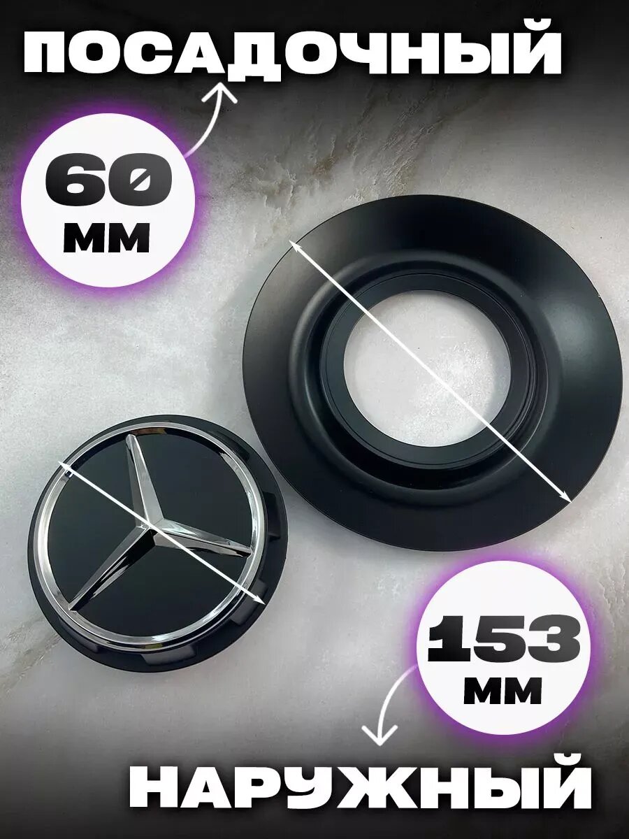 Колпаки AMG изготовлены из пластика, который обладает высокой прочностью и устойчивостью к механическим воздействиям, а также обеспечивает долговечность и сохранение первоначального вида на протяжении всего срока эксплуатации. Наружный диаметр заглушки 153 мм, посадочный 60 мм. Перед заказом обязательно проверьте размеры колпаков для вашего литья!
