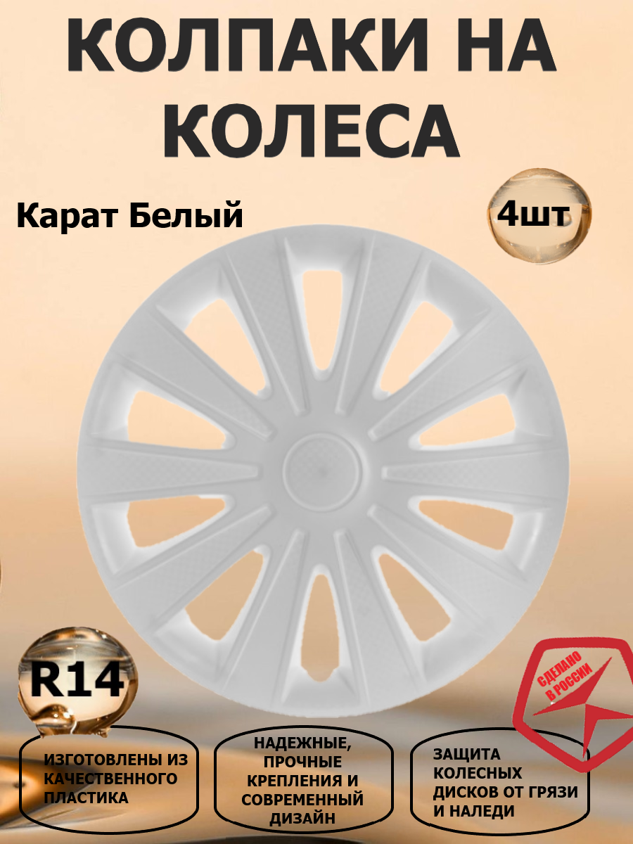 Купить Колпаки на колеса R14 Карат, цвет белый, 4 штуки в комплекте с доставкой по всей России. Колпаки на колеса R14 Карат, цвет белый, 4 штуки в комплекте: сравнение цен, характеристики, фото, актуальное наличие и цены.