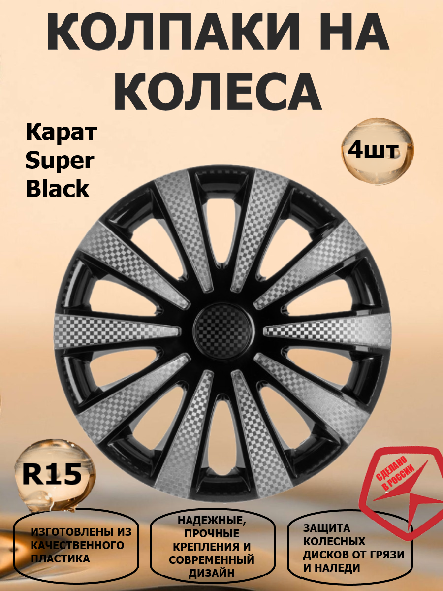 Купить Колпаки на колеса R15 Карат Super Black, цвет черный/серебристый, 4 штуки в комплекте с доставкой по всей России. Колпаки на колеса R15 Карат Super Black, цвет черный/серебристый, 4 штуки в комплекте: сравнение цен, характеристики, фото, актуальное наличие и цены.