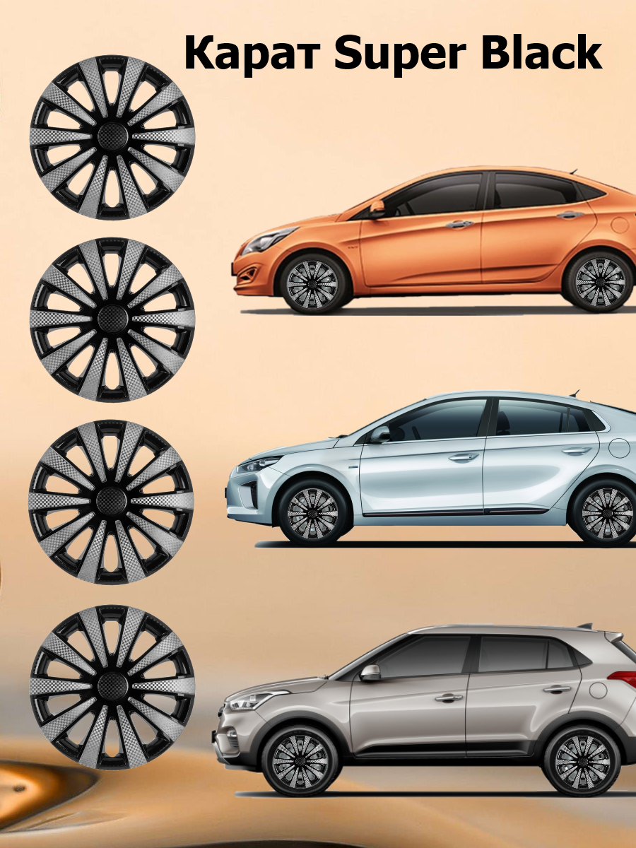 Колпаки на колеса R14 Карат Super Black, цвет черный/серебристый, 4 штуки в комплекте: сравнение цен, характеристики, фото, актуальное наличие и цены.