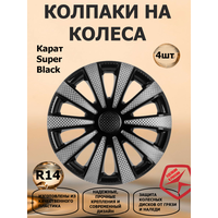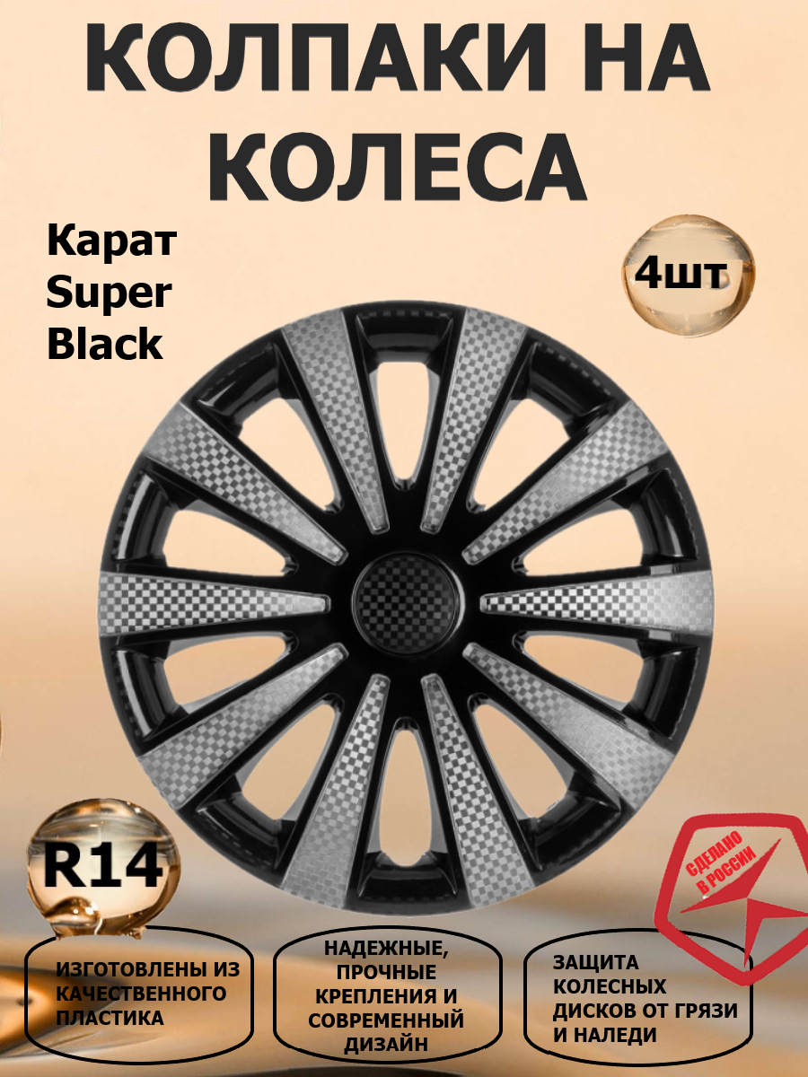 Купить Колпаки на колеса R14 Карат Super Black, цвет черный/серебристый, 4 штуки в комплекте с доставкой по всей России.