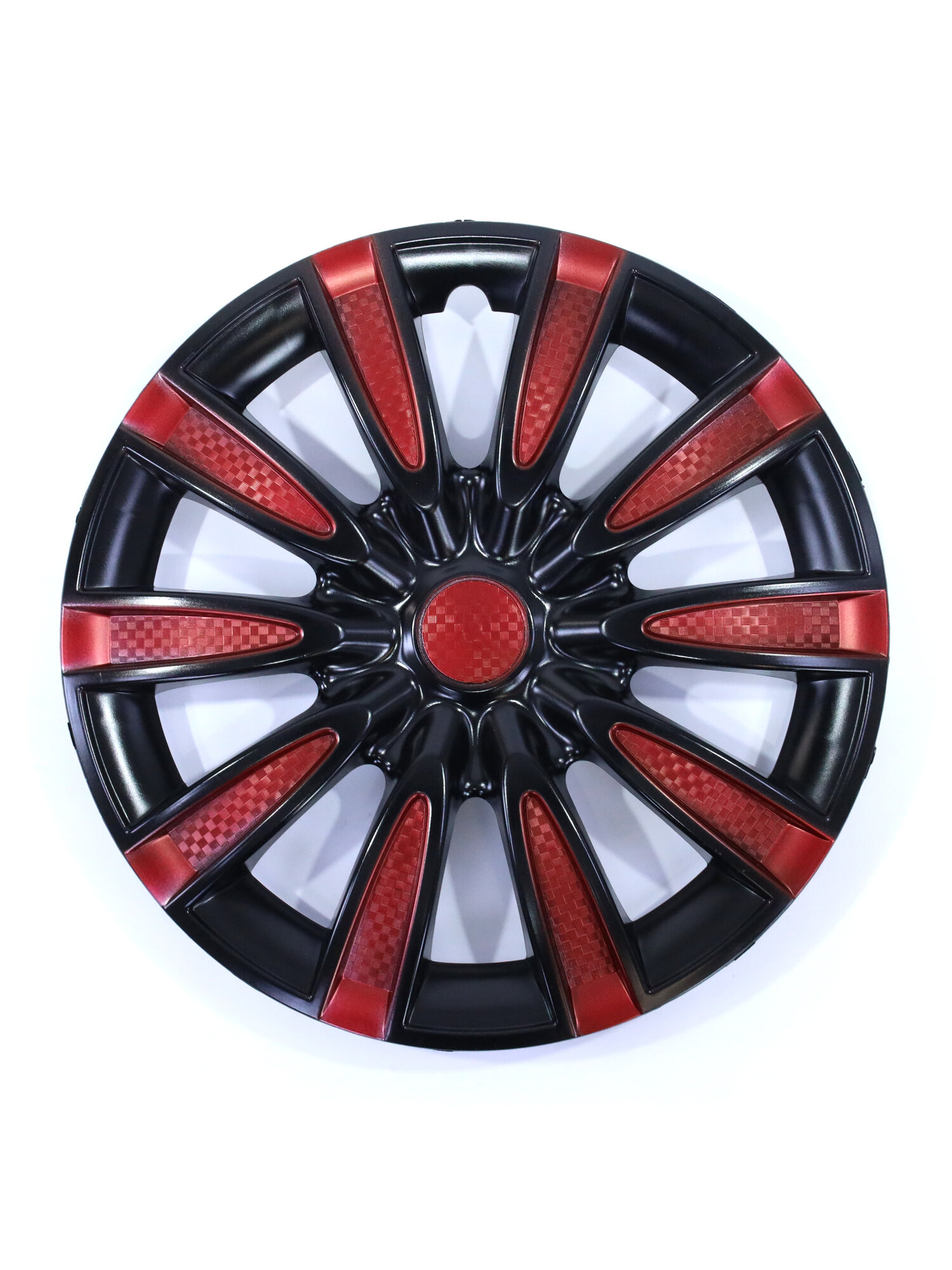 Эти колпаки предназначены для легковых автомобилей и имеют типоразмер 14". Они выполнены в черно-красном цвете, что придает им особый шарм и делает их заметными на дороге.