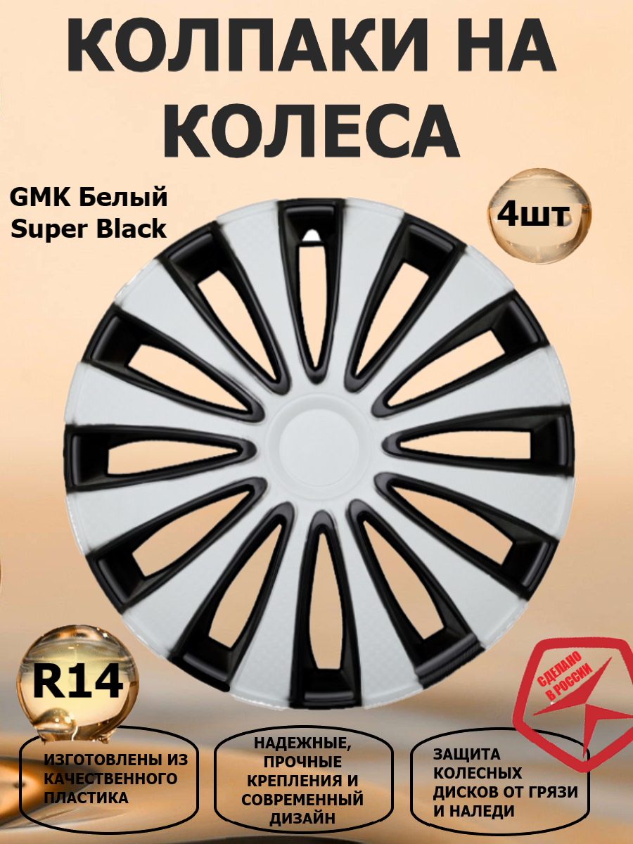 Купить Колпаки на колеса STAR GMK R14, 4 штуки в комплекте, цвет белый/черный с доставкой по всей России. Колпаки на колеса STAR GMK R14, 4 штуки в комплекте, цвет белый/черный: сравнение цен, характеристики, фото, актуальное наличие и цены.