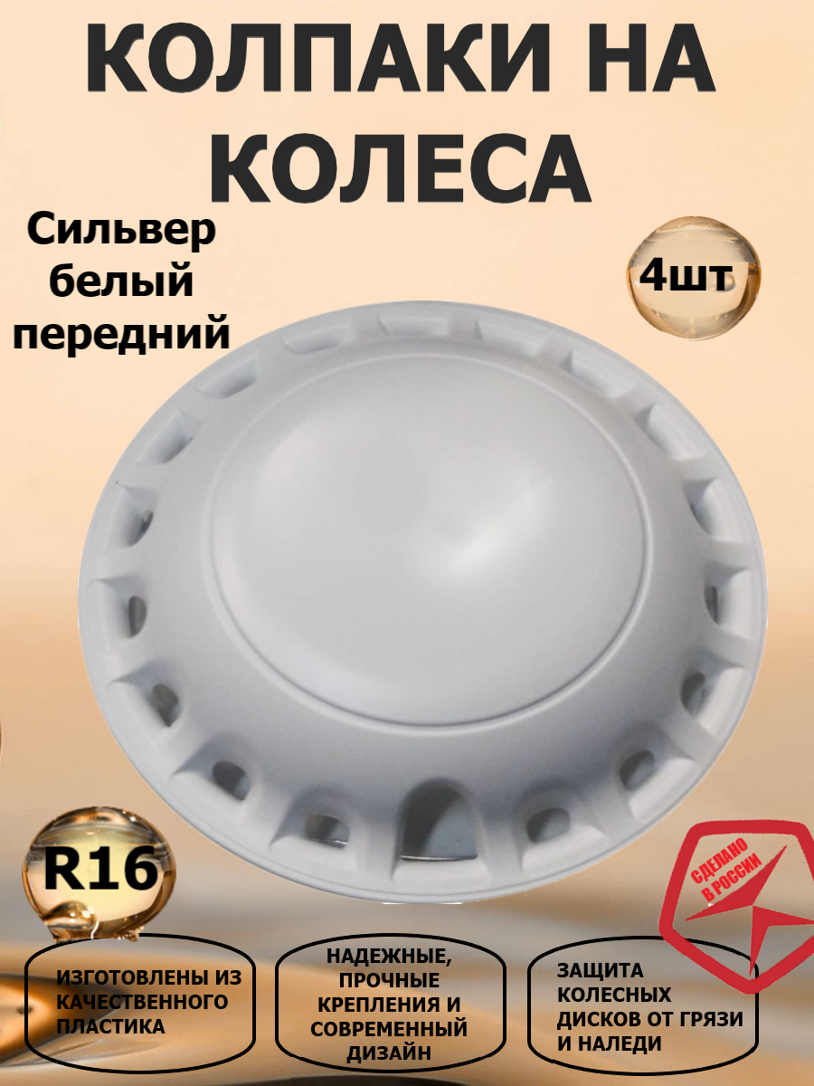 Комплект колпаков на колеса R16 Сильвер. Цвет белый. В комплекте 2 штуки выпуклых колпаков на переднюю ось и 2 штуки плоских колпаков на заднюю ось. Альтернатива литым дискам, в смысле улучшения внешнего вида автомобиля. Авто колпаки создадут иллюзию роскоши. Колесные колпаки имеют идентичные радиусу дисков размеры Помимо эффекта тюнинга колпаки дают дополнительную защиту колесу от грязи. Легко устанавливаются и снимаются, при этом очень хорошо держатся на диске. Kолпаки на колёса защитят колесные диски от грязи, пыли, осколков льда, камней, гравия. А также возьмут на себя не только боковые удары, но и предотвратят повреждения дисков от разлома при наезде на большой камень. При грамотном уходе и бережном отношении колпаки смогут прослужить вашему автомобилю несколько лет.