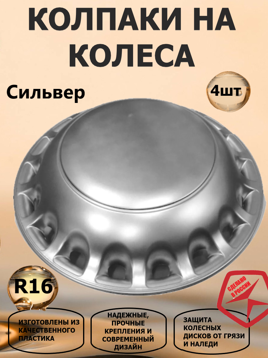 Комплект колпаков на колеса R16 Сильвер. Цвет серебристый. В комплекте 2 штуки выпуклых колпаков на переднюю ось и 2 штуки плоских колпаков на заднюю ось. Альтернатива литым дискам, в смысле улучшения внешнего вида автомобиля. Авто колпаки создадут иллюзию роскоши. Колесные колпаки имеют идентичные радиусу дисков размеры Помимо эффекта тюнинга колпаки дают дополнительную защиту колесу от грязи. Легко устанавливаются и снимаются, при этом очень хорошо держатся на диске. Kолпаки на колёса защитят колесные диски от грязи, пыли, осколков льда, камней, гравия. А также возьмут на себя не только боковые удары, но и предотвратят повреждения дисков от разлома при наезде на большой камень. При грамотном уходе и бережном отношении колпаки смогут прослужить вашему автомобилю несколько лет.