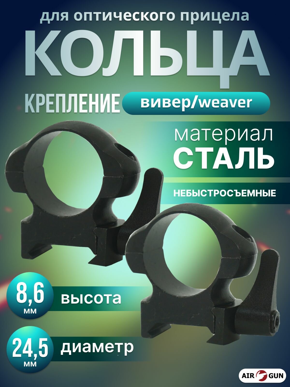 Купить Кольца крепления прицела 25,4 Вивер, стальные — повышенной прочности, небыстросъемные с доставкой по всей России.