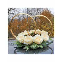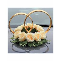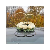 Кольца на машину свадебные украшение на крышу автомобиля жениха и невесты декор с цветами из роз. Кольца на машину - это свадебные украшения на автомобиль на крышу авто молодоженов жениха и невесты. Кольца на машину свадебные легкие, золотистые пластиковые с цветочным декором. Кольца крепятся на крышу автомобиля за стойки между дверьми или под крышу с помощью 4 ленточек, которые идут в комплекте. Примерный размер: 46 х 27 см. Этот свадебный аксессуар для машины выделит Ваш свадебный кортеж среди других машин на свадьбе и позволит сделать свадебную фотосессию яркой и красивой на церемонии бракосочетания новобрачных в загсе или на прогулке. Данный декор на автомобиле смотрится изящно и легко. Нежные цветы в сочетании с атласными бантами делают эту композицию просто невесомой и подходит для оформления практически любого автомобиля. У нас вы найдете все для свадьбы, свадебные бокалы, украшения на бутылки, декор для стола молодоженов. Цветы: розы. *** Товары из этой коллекции: *** Лента на машину "Свадебная мечта" 26759511, *** Украшение на ручки/зеркала "Свадебная мечта 3 розы" (2 шт) 26810580, *** Композиция на капот «Свадебная мечта» 40951471, *** Украшение на ручки/зеркала с фатином "Свадебная мечта 1 роза" (2 шт) 25347106