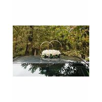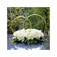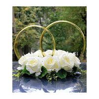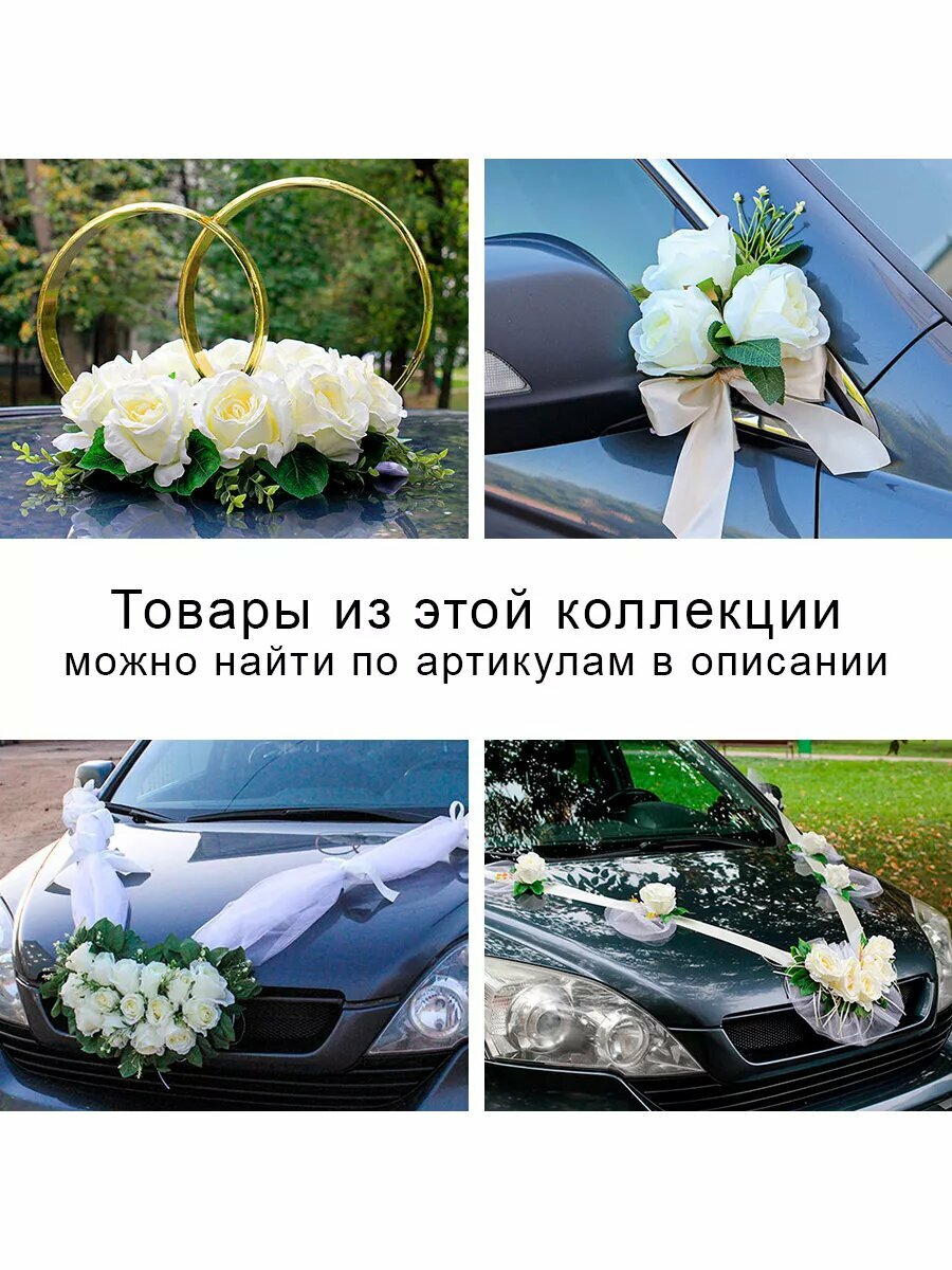 Кольца на машину свадебные украшение на крышу автомобиля жениха и невесты декор с цветами из роз. Кольца на машину - это свадебные украшения на автомобиль на крышу авто молодоженов жениха и невесты. Кольца на машину свадебные легкие, золотистые пластиковые с цветочным декором. Кольца крепятся на крышу автомобиля за стойки между дверьми или под крышу с помощью 4 ленточек, которые идут в комплекте. Примерный размер: 46 х 27 см. Этот свадебный аксессуар для машины выделит Ваш свадебный кортеж среди других машин на свадьбе и позволит сделать свадебную фотосессию яркой и красивой на церемонии бракосочетания новобрачных в загсе или на прогулке. Данный декор на автомобиле смотрится изящно и легко. Нежные цветы в сочетании с атласными бантами делают эту композицию просто невесомой и подходит для оформления практически любого автомобиля. У нас вы найдете все для свадьбы, свадебные бокалы, украшения на бутылки, декор для стола молодоженов. Цветы: розы. *** Товары из этой коллекции: *** Композиция на капот «Свадебная мечта» 40951433, *** Украшение на ручки/зеркала "Свадебная мечта 3 розы" (2 шт) 88890022, *** Украшение на ручки/зеркала с фатином "Свадебная мечта 1 роза" (2 шт) 41016995, *** Лента на машину "Свадебная мечта" 41016295, *** Украшение на ручки "Свадебная мечта" (2 шт) 27989303