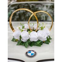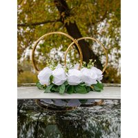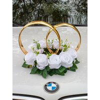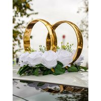 Кольца на машину свадебные украшение на крышу автомобиля жениха и невесты декор с цветами из роз. Кольца на машину - это свадебные украшения на автомобиль на крышу авто молодоженов жениха и невесты. Кольца на машину свадебные легкие, золотистые пластиковые с цветочным декором. Кольца крепятся на крышу автомобиля за стойки между дверьми или под крышу с помощью 4 ленточек, которые идут в комплекте. Примерный размер: 46 х 27 см. Этот свадебный аксессуар для машины выделит Ваш свадебный кортеж среди других машин на свадьбе и позволит сделать свадебную фотосессию яркой и красивой на церемонии бракосочетания новобрачных в загсе или на прогулке. Данный декор на автомобиле смотрится изящно и легко. Нежные цветы в сочетании с атласными бантами делают эту композицию просто невесомой и подходит для оформления практически любого автомобиля. У нас вы найдете все для свадьбы, свадебные бокалы, украшения на бутылки, декор для стола молодоженов. Цветы: розы. *** Товары из этой коллекции: *** Украшение на ручки/зеркала "Свадебная мечта 3 розы" (2 шт) 26810640, *** Лента на машину "Свадебная мечта" 26759424, *** Украшение на ручки/зеркала с фатином "Свадебная мечта 1 роза" (2 шт) 25232032, *** Композиция на капот «Свадебная мечта» 40951433