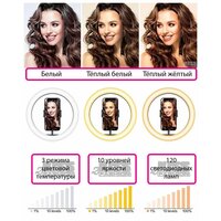 Кольцевая лампа отлично подойдет для селфи, для визажистов, для наращивания ресниц, для татуажа и макияжа, как свет для фото и видео и, конечно же, как подарок юным блогерам. Имеет десять регулировок яркости свечения и три настройки света - теплый, холодный и смешанный.