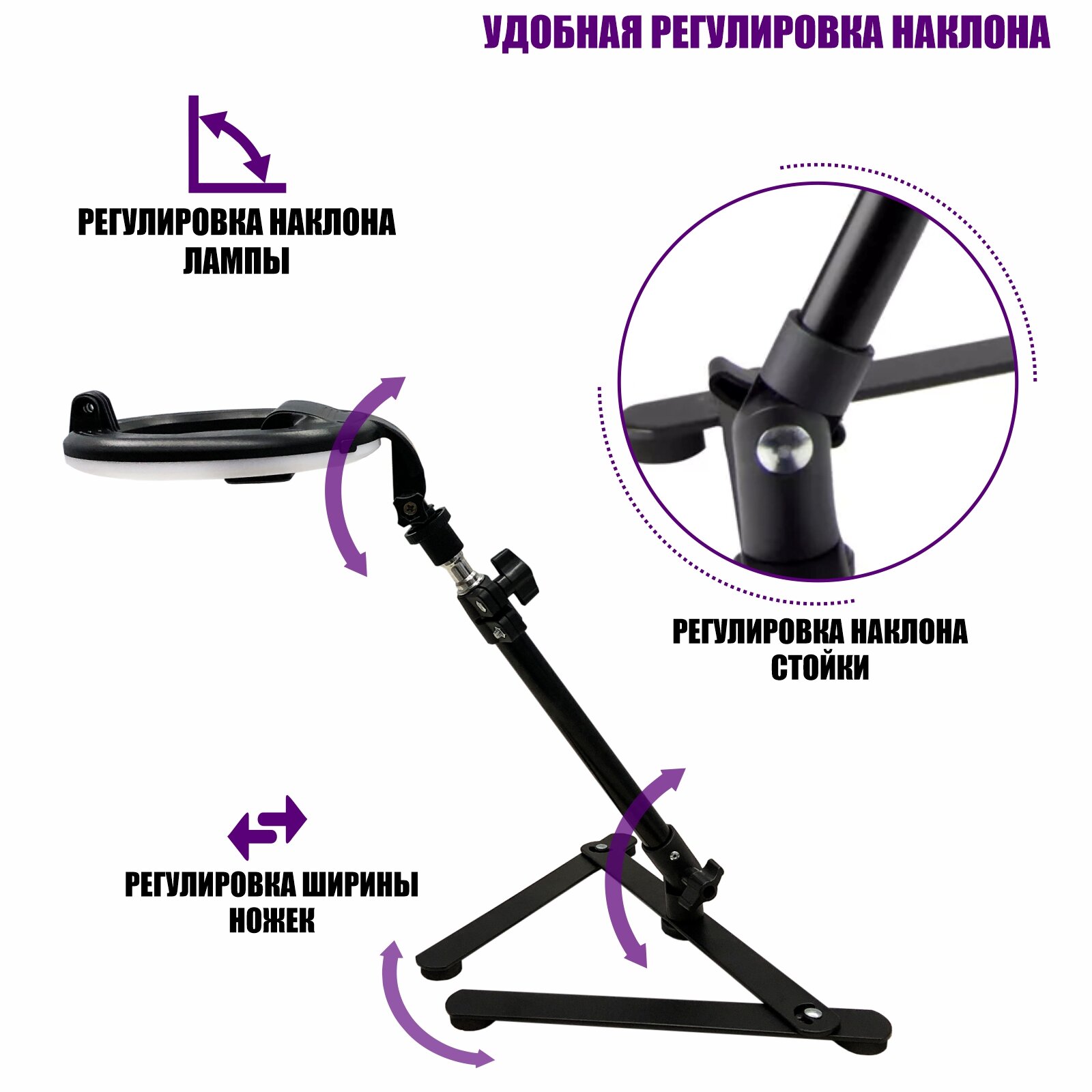 Купить Кольцевая лампа L16-L07-P с держателем телефона на настольном наклонном держателе с доставкой по всей России.