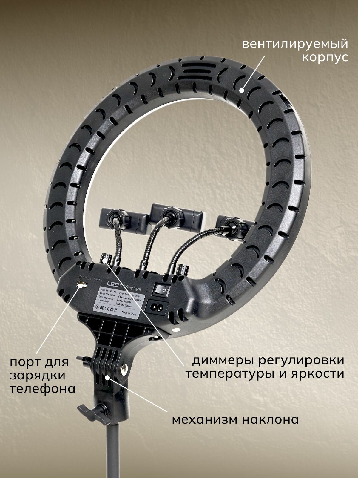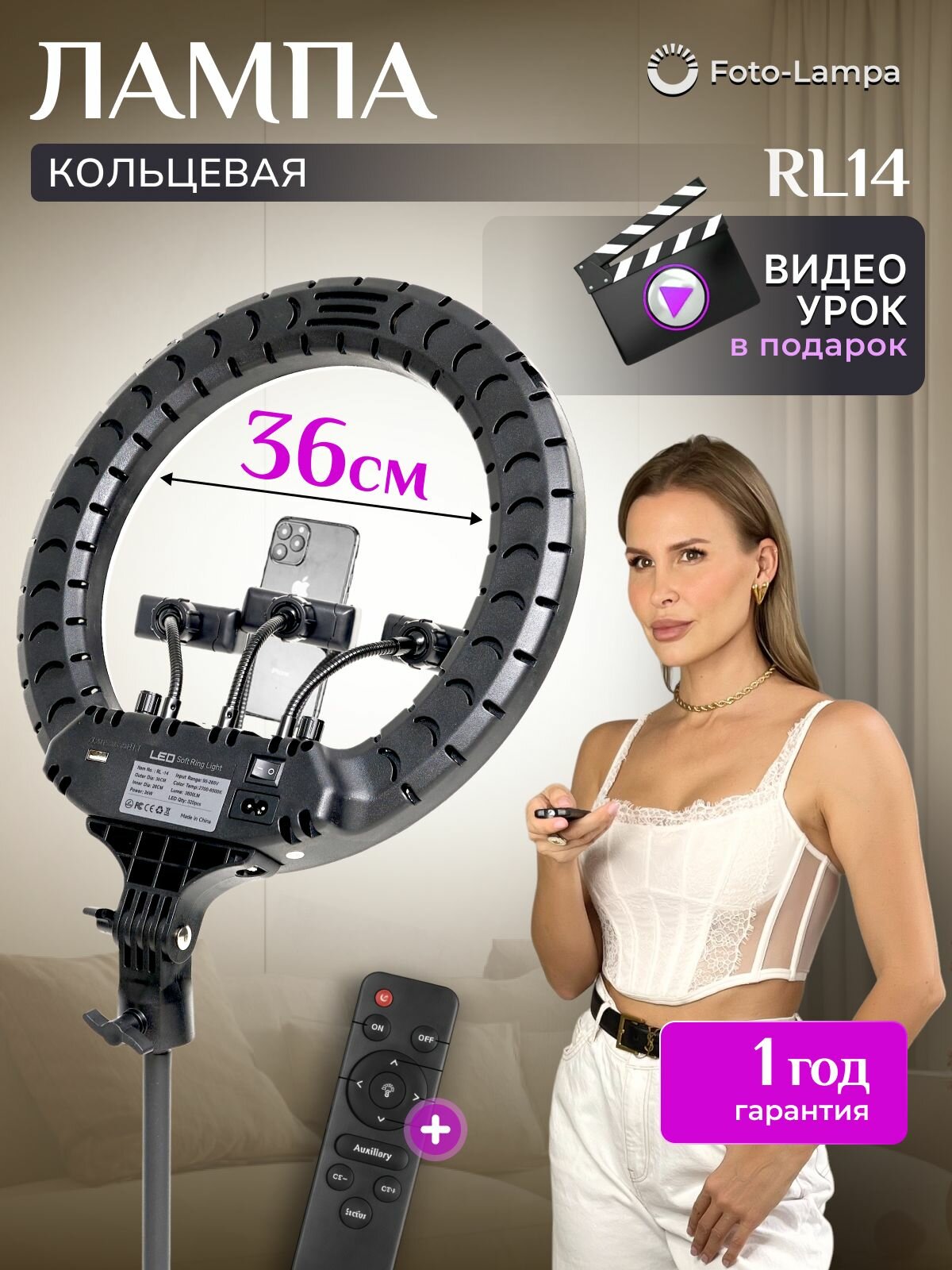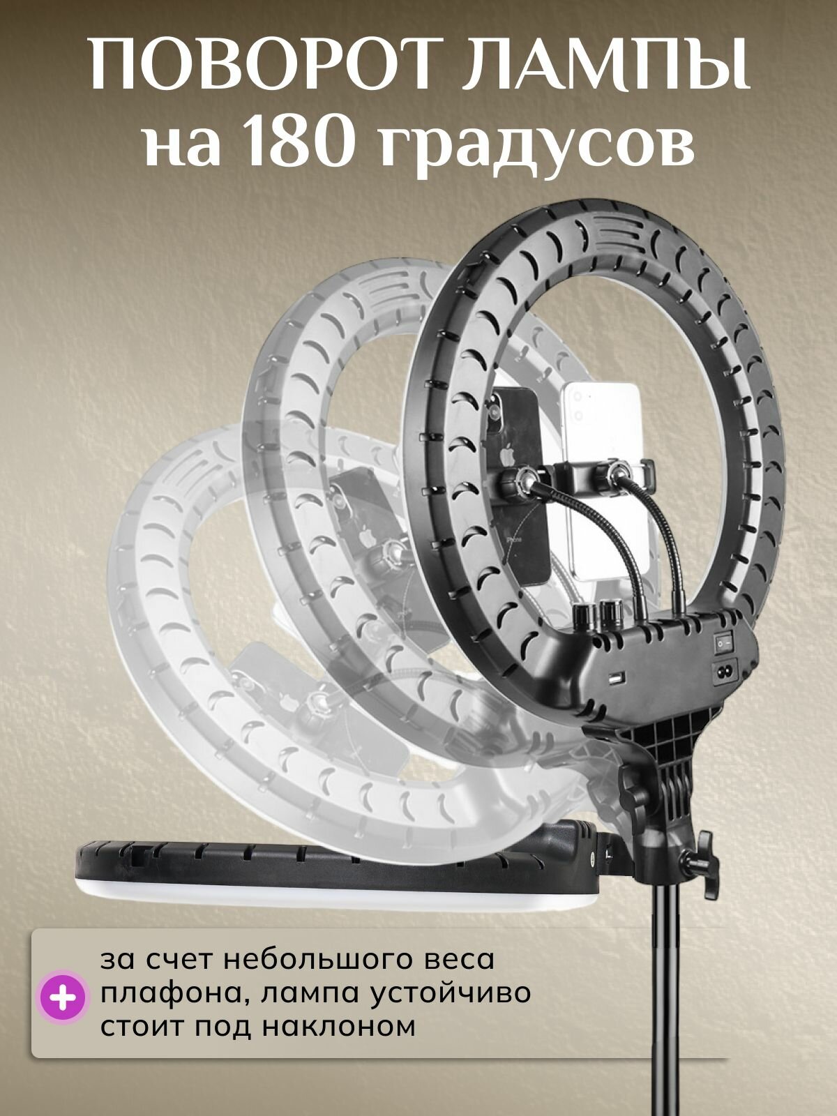 Кольцевая лампа LED светодиодная напольная со штативом 36 см FOTO LAMPA, в комплекте держатель для телефона 3 шт, пульт управления: сравнение цен, характеристики, фото, актуальное наличие и цены.