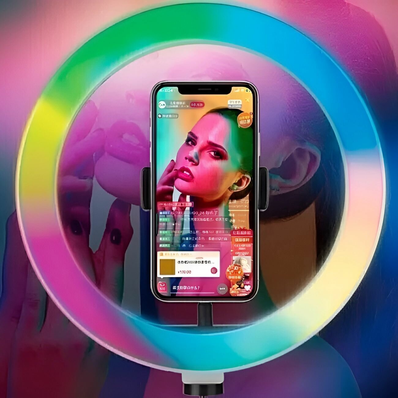 Купить Кольцевая лампа RGB светодиодная разноцветная MJ 33 (33 см) Цветная селфи лампа с доставкой по всей России.