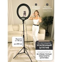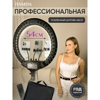 Купить Кольцевая лампа LED светодиодная напольная со штативом 54 см FOTO LAMPA, в комплекте держатель для телефона 3 шт, пульт управления, кнопка для селфи bluetooth с доставкой по всей России.