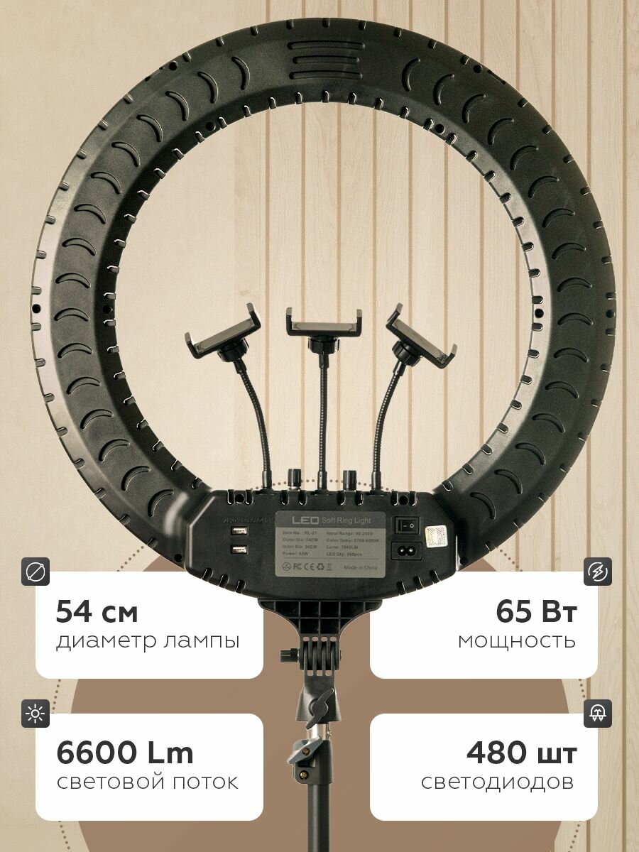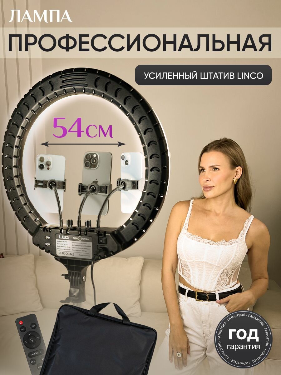 Кольцевая лампа LED светодиодная напольная со штативом 54 см FOTO LAMPA, в комплекте держатель для телефона 3 шт, пульт управления, кнопка для селфи bluetooth: сравнение цен, характеристики, фото, актуальное наличие и цены.