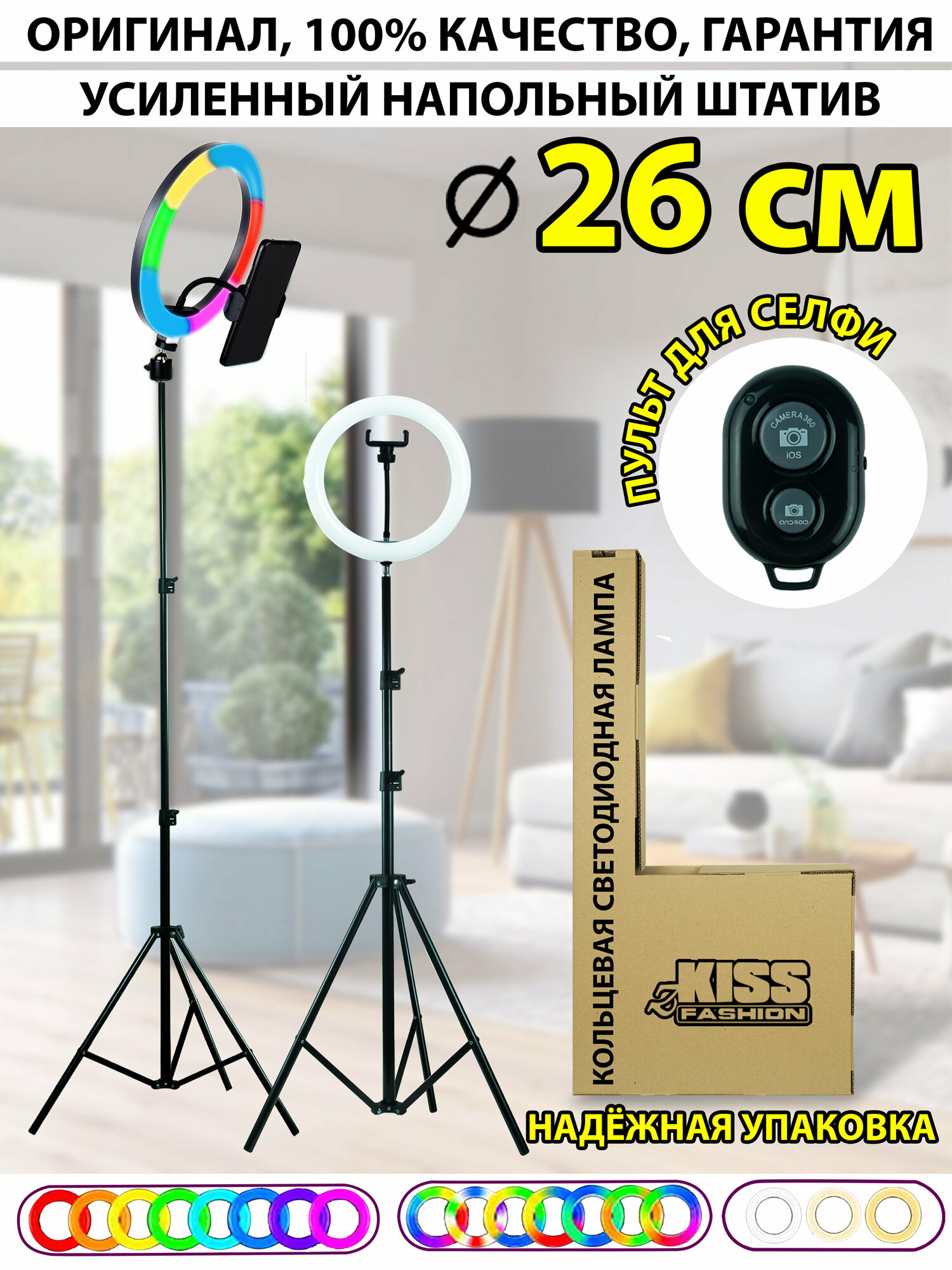 Купить Кольцевая лампа высокий напольный штатив RGB 26 см zKissFashion цветная со штативом, держателем для телефона, селфи пультом, шарниром, световое кольцо с доставкой по всей России. Кольцевая лампа высокий напольный штатив RGB 26 см zKissFashion цветная со штативом, держателем для телефона, селфи пультом, шарниром, световое кольцо: сравнение цен, характеристики, фото, актуальное наличие и цены.