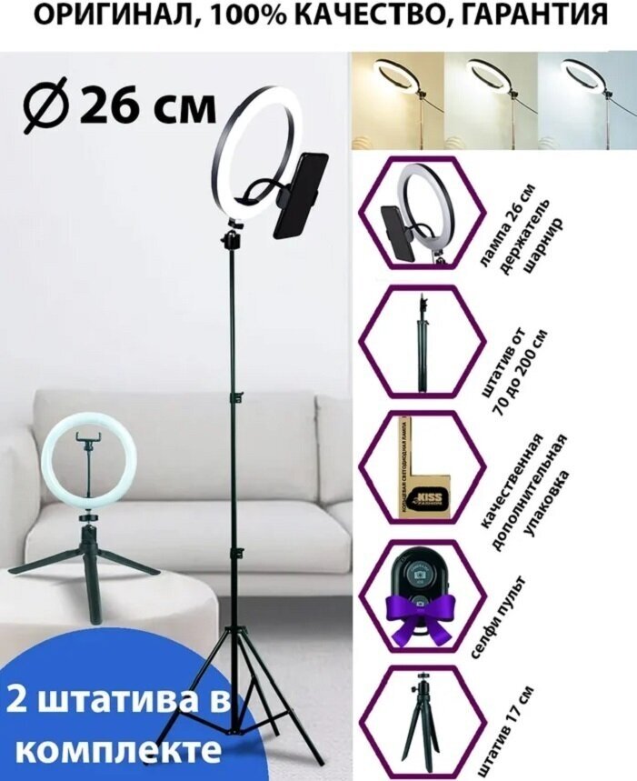 Купить Кольцевая LED-лампа 26 см ДВА штатива/штатив /держатель для телефона/ селфи пульт/шарнир с доставкой по всей России. Кольцевая LED-лампа 26 см ДВА штатива/штатив /держатель для телефона/ селфи пульт/шарнир: сравнение цен, характеристики, фото, актуальное наличие и цены.