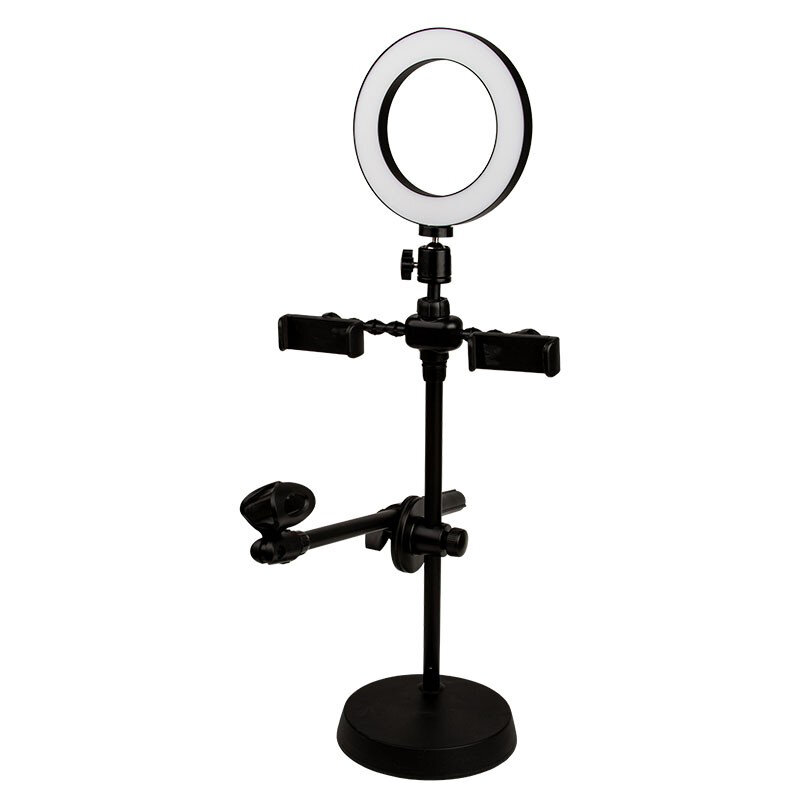 Купить Кольцевая светодиодная лампа LP 16см 10 Вт 3000-6000К настольная с держателем для двух смартфонов и микрофона с доставкой по всей России. Кольцевая светодиодная лампа LP 16см 10 Вт 3000-6000К настольная с держателем для двух смартфонов и микрофона: сравнение цен, характеристики, фото, актуальное наличие и цены.