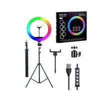Купить Кольцевая светодиодная led лампа цветная MJ33/RGB со штативом 2.1 м и держателем для смартфона с доставкой по всей России. Кольцевая светодиодная led лампа цветная MJ33/RGB со штативом 2.1 м и держателем для смартфона: сравнение цен, характеристики, фото, актуальное наличие и цены.