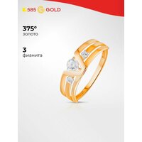 Кольцо 585GOLD, красное золото, 375 проба, родирование, фианит, размер 17.5, красный