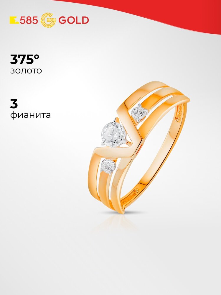 Купить Кольцо 585GOLD, красное золото, 375 проба, родирование, фианит, размер 17.5, красный с доставкой по всей России.